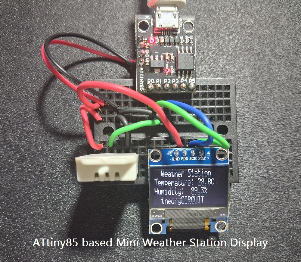 Monitoring Temperature and Humidity around us is very helpful in may ways, We can now easily build a small and compact weather station using ATtiny85 microcontroller, DHT22 sensor and 0.96″ inch SSD1306 OLED display. ATtiny85 is a tiny powerful 8 bit microcontroller in a 8 pin package and it can run in minimum power with very less components. Here we using DHT22 sensor to measure temperature and humidity and then display it on OLED screen. This setup is simple and suitable for DIY desk weather monitor and compact environment sensing.