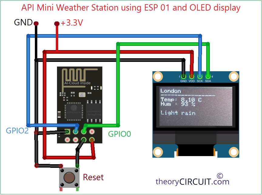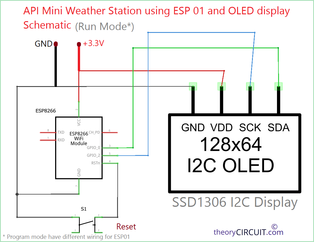 ESP 01 SSD1306 API Mini Weather Station Run Mode Wiring
