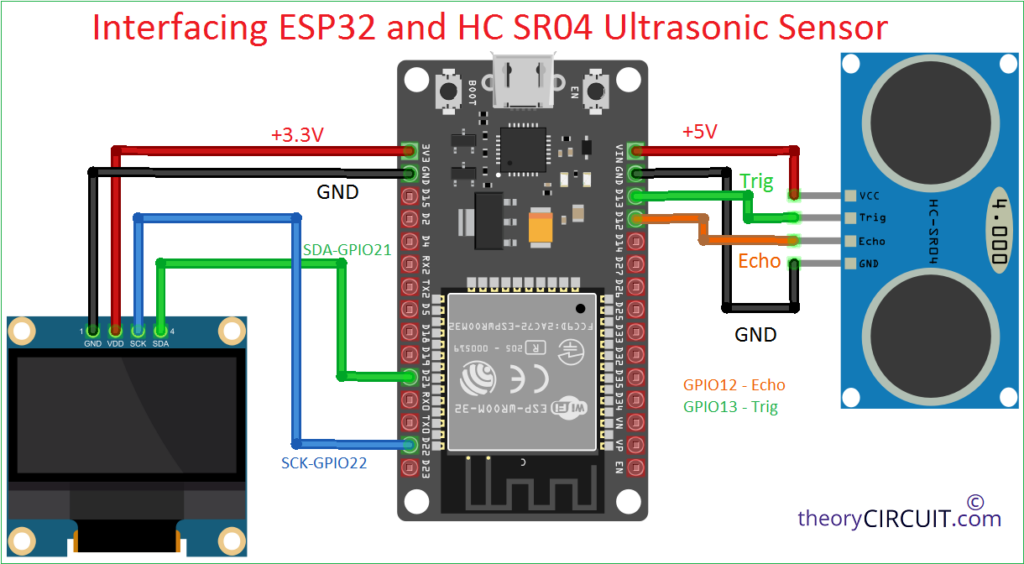 HC SR04 Ultrasonic Sensor is very popular among electronics makers and engineers, we can use it in distance measurement, obstacle detection, water level sensor and for robotics etc., Here is the simple way to interface the HC SR04 ultrasonic sensor with ESP32 and Display the measured distance value on an SSD1306 OLED display using I2C communication method. Before that lets understand HC SR04,